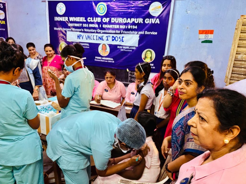 दुर्गापुर:इनर व्हील क्लब ऑफ दुर्गापुर जीवा की ओर से 1 से 10 साल की बच्चियों को एचपीवी वैक्सीन दिए गए।विधाननगर गर्ल्स हाई स्कूल में आयोजित इस कार्यक्रम में संस्था की सभी पदाधिकारीगण उपस्थित थीं।सभी ने इस अभियान में बढ़ चढ़कर हिस्सा लिया।उपस्थित थीं अध्यक्ष अनामिका बनर्जी,उपाध्यक्ष निवेदिता रॉय,सचिव गार्गी दे सहित अन्य सदस्यगण।उन्होंने बताया कि संस्था की ओर से इस तरह का अभियान लगातार चलाया जा रहा है।इस तरह का अभियान अन्य स्कूलों में भी चलाया जाएगा।